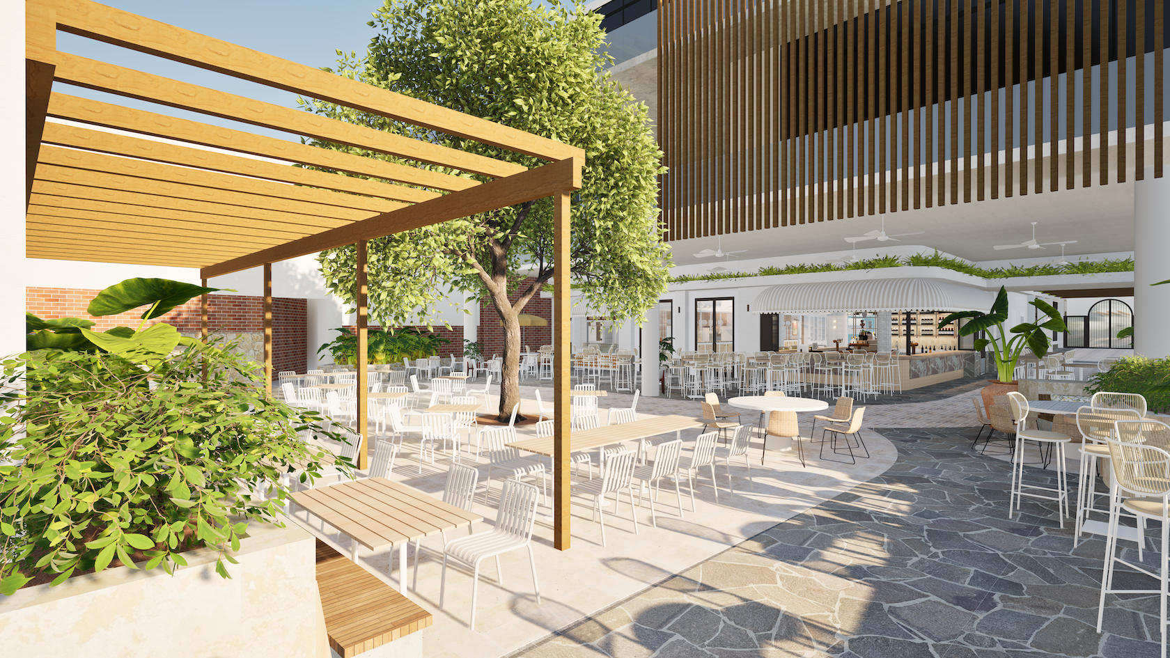 Inspired by the Amalfi Coast, Alfi’s look mixes natural timbers, soft stone, and pastel tones, carrying through from the dining room to the outdoor patio. At around 800 square metres, it will be Everton Plaza’s largest venue—ideal for family nights out, group gatherings, or anyone keen to try the Group’s newest suburban addition.